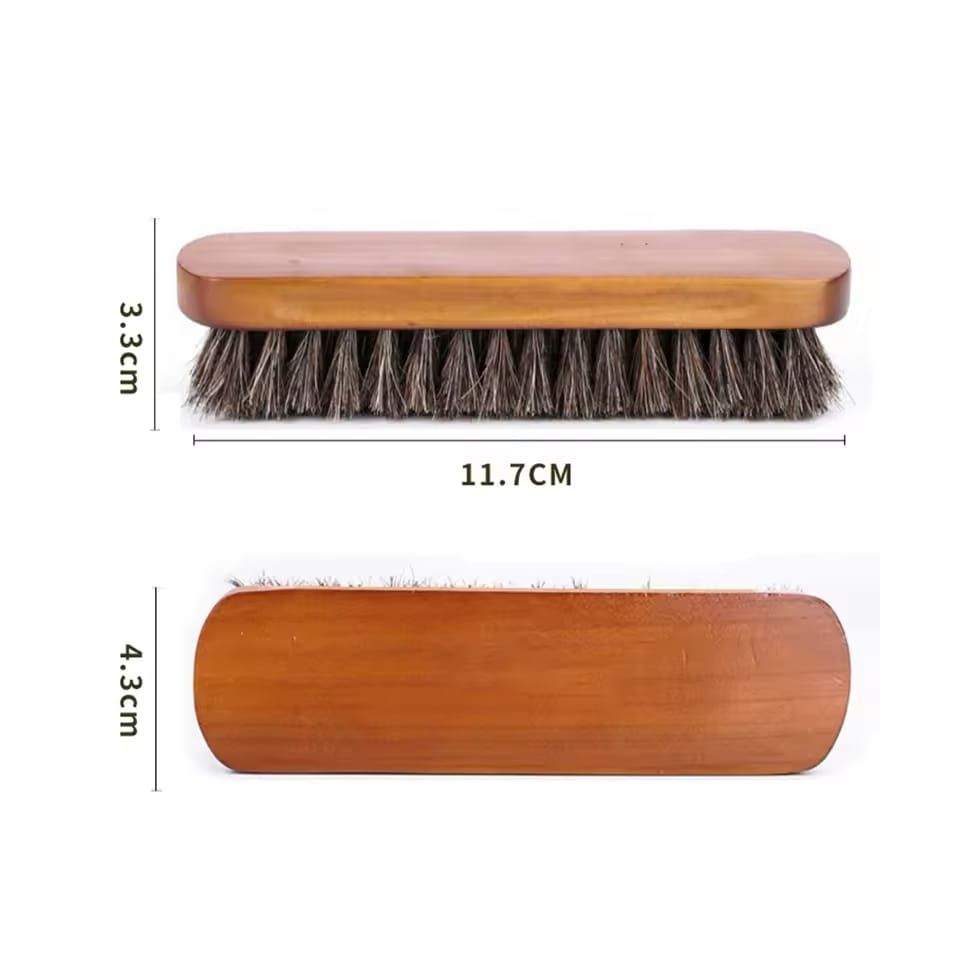 Щетка изготовлена из высококачественной гривы свиньи, щетка бережно ухаживает за обувью и эффективно удаляет грязь и пятна. Эргономичная деревянная ручка обеспечивает удобный захват, что делает использование комфортным даже при длительной работе. Размер щетки идеально подходит для руки, позволяя точно наносить воск или любые другие средства по уходу за кожей. Ее стойкость к высоким температурам гарантирует долговечность и сохранение формы даже при регулярном использовании. Щетка также подходит для тех, кто предпочитает чистку без полировки — она поднимает грязь, не оставляя следов.